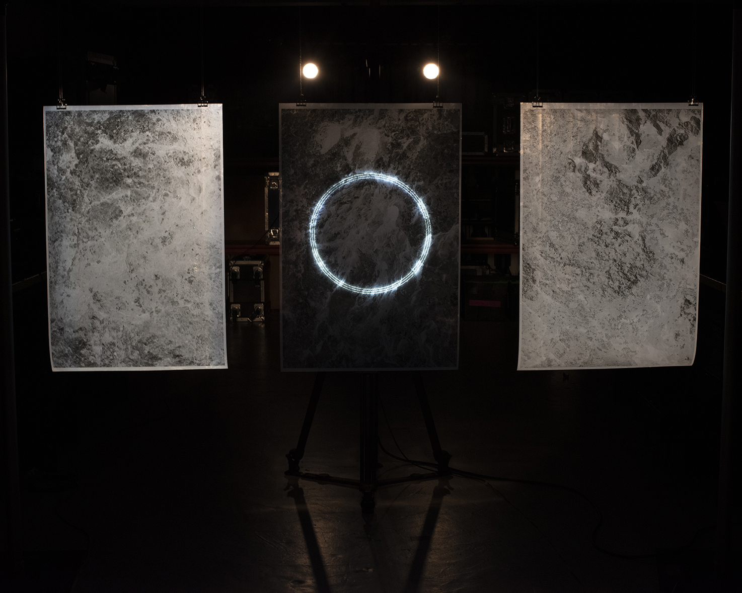 A collaboration with Audio Visual project .mp7, The Wheel is the current incarnation of an exploraton into the triple stone circle ritual complex at Stanton Drew, Somerset. The circles are built in alignment with celestial bodies, in accordance with the cycles of the year, the stones reach up to the lights in the sky.